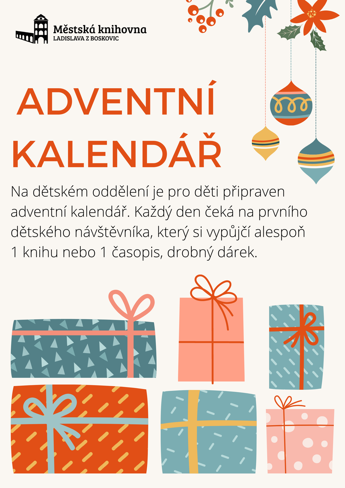 Na dětském oddělení je pro děti připraven adventní kalendář. Každý den čeká na prvního dětského návštěvníka, který si vypůjčí alespoň 1 knihu nebo 1 časopis, drobný dárek. Otevřeno je denně, kromě pátku a neděle, vždy od 12:00 do 17:00 hod., v sobotu od 8:30 do 11:30 hod.