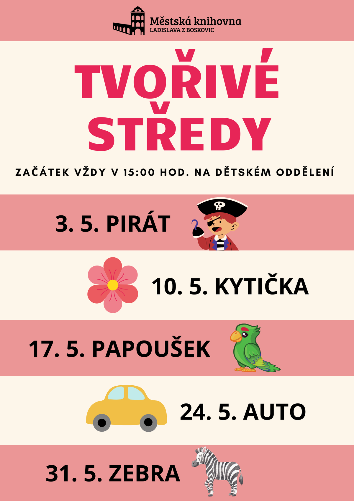 Začátek vždy v 15:00 hod. v dětském oddělení MěK.